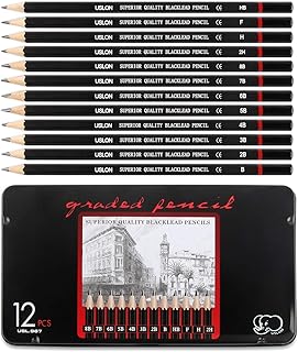 Crayon à Papier Pour Dessin Profesionnel, Crayon de Croquis, Lot De 12 Crayons de Dessin En Graphite Haute Qualité, A 12 Types de Dureté| Avec Boîte Métallique de Protection