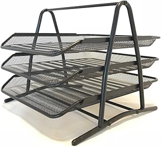 Babygiraffe - Corbeille à courrier à 3 Plateaux en Maille - Organisateur en métal pour Bureau, Format A4 3 Tier Tray Black