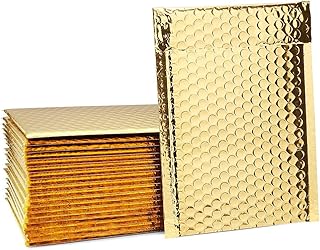 Dyforce Paquet 50 dorées métallisées enveloppe a bulle #0, emballage colis 15x23cm 6x9in, Enveloppes bulle rembourrées, auto-étanchéité