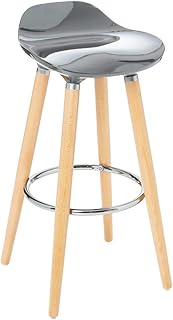 Tabouret de bar avec pieds en hêtre naturel et assise coloris GRIS - Style scandinave, look moderne et épuré