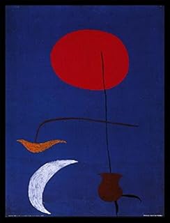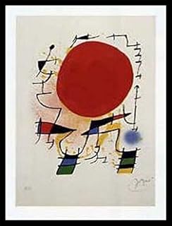 1art1 Joan Miró Poster Reproduction et Cadre (MDF) Noir - Le Soleil Rouge (80 x 60cm)