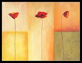 1art1 Erika Heinemann Poster Reproduction et Cadre (MDF) Noir - Dreierlei Mohn II (80 x 60cm)