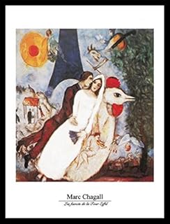 1art1 Marc Chagall Poster Reproduction et Cadre (MDF) Noir - Les Fiances (80 x 60cm)