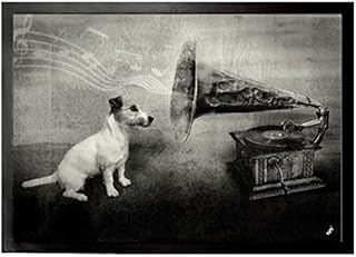 1art1 Chiens Poster Reproduction et Cadre (MDF) Noir - His Master's Voice, Jack Russell Terrier (80 x 60cm)