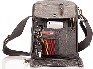 Sac en Toile Petit Sac bandoulière Homme Sac Besace Vintage Sacoche Porté épaule de Voyage pour école Université Cours Rétro Pochette Multifonction Sport Bourse