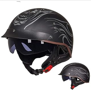 GAOZH Classic Casque Moto - Compact Harley Retro 3/4 Casque - Vintage Jet Scooter Chopper Casque Homme Et Femme Demi-Jet - Visière - ECE Homologué(54-61cm)