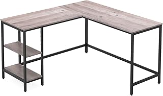 HOOBRO Bureau d’Angle, Table Informatique, Table en Forme de L, Poste de Travail, Gain de Place, pour Bureau à Domicile, Table de Jeu Stable, Style Industriel, Grège et Noir EBG35DN01