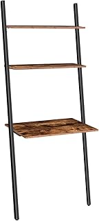 HOOBRO Étagère échelle, Table Informatique, Petite Bureau Contre Le Mur, Poste Travail, Adapté aux Petits Espaces, Cadre Métallique Stable et Robuste, Montage Facile, Marron Rustique EBF72DN01